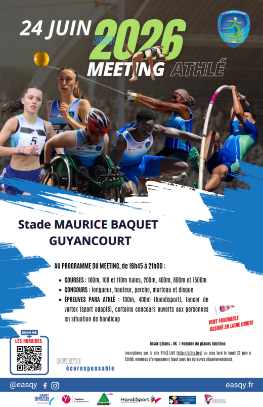 La ville de Guyancourt et SQY accompagnent l’EASQY pour une organisation sans faille ! Mercredi 24 juin 2026 sur le stade Baquet...