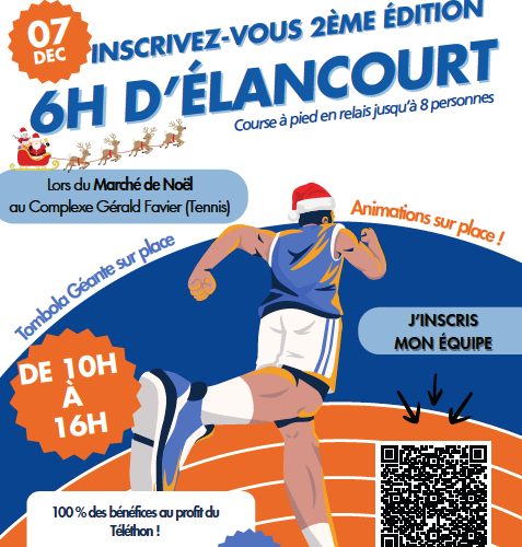 Dimanche 7 décembre 2025, l’EASQY a inscrit 2 équipes de running de 6 personnes du site d’ÉLANCOURT aux 6 heures d’Élancourt, pour le Téléthon.
