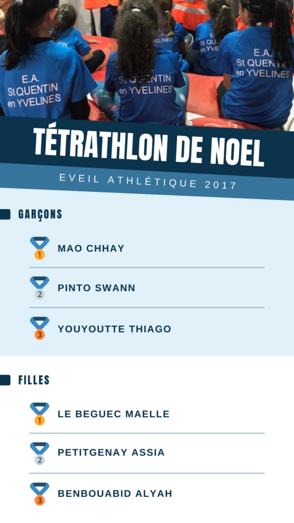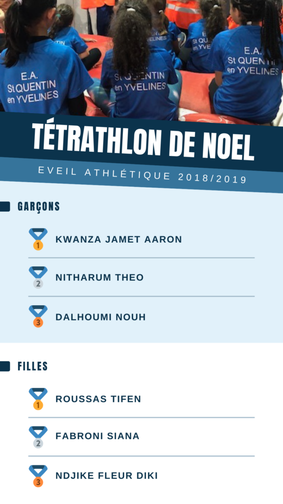 Le dimanche 07 décembre s’est déroulé notre traditionnel Tétrathlon de Noël, une belle occasion pour les enfants des catégories Poussins/Poussines et Éveils Athlé de se tester sur les différentes disciplines travaillées à l’entraînement.