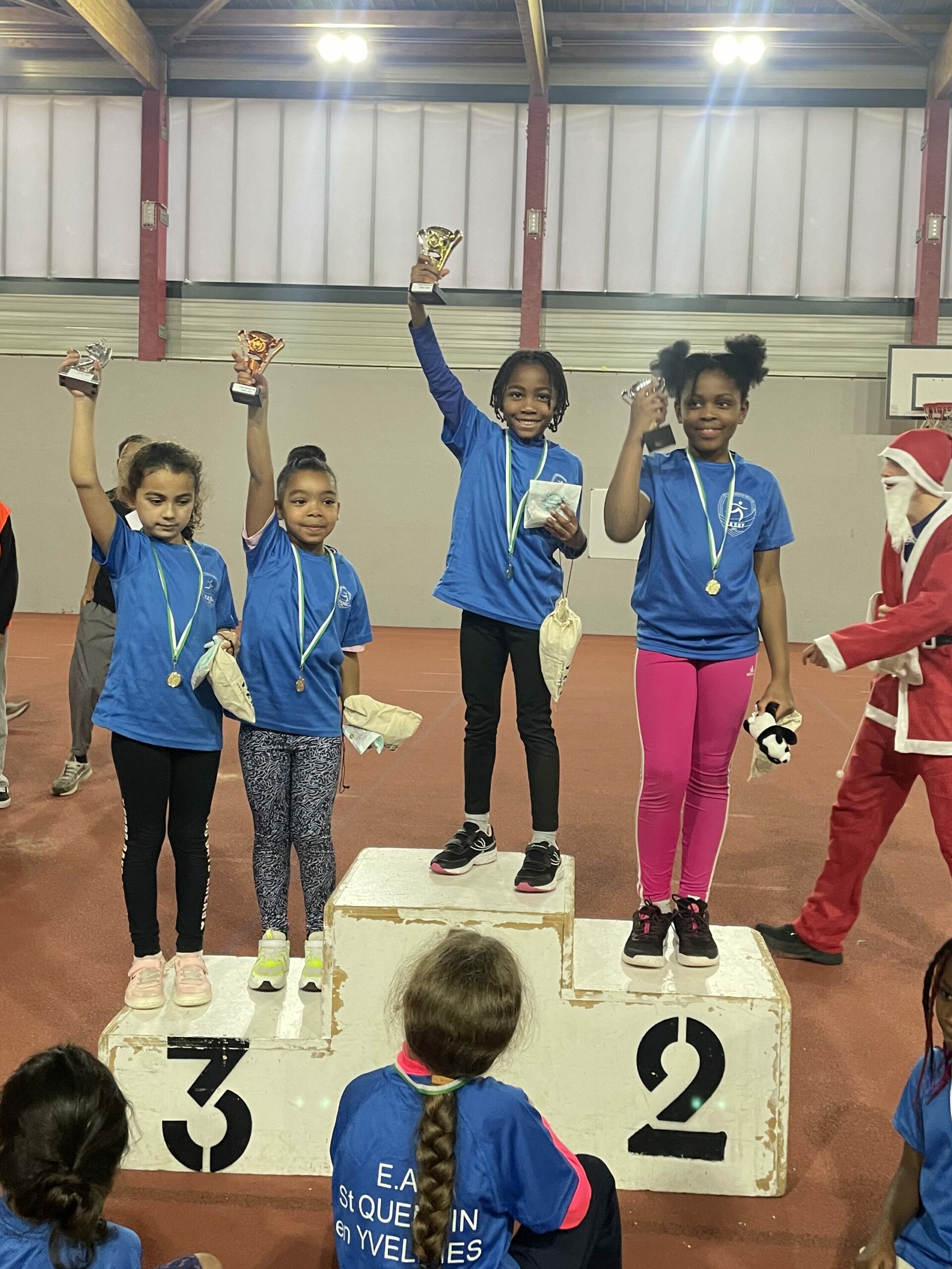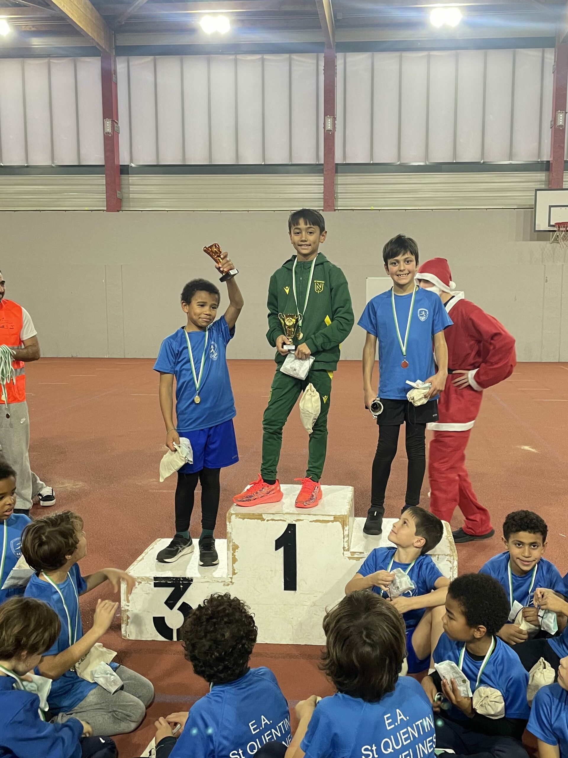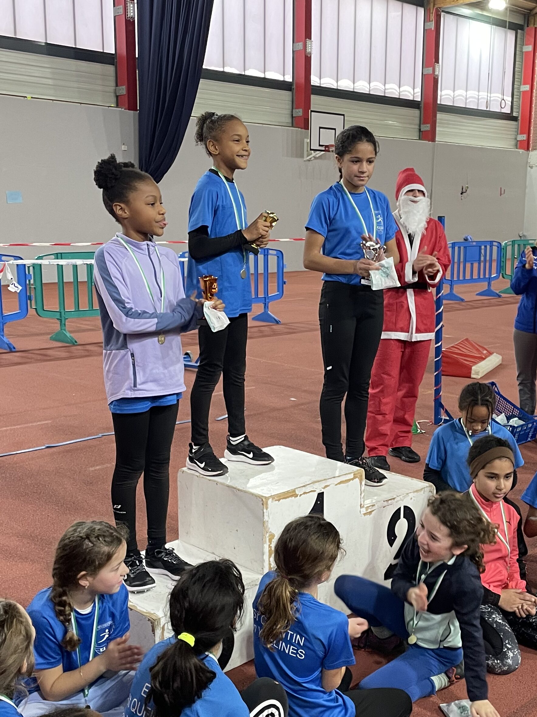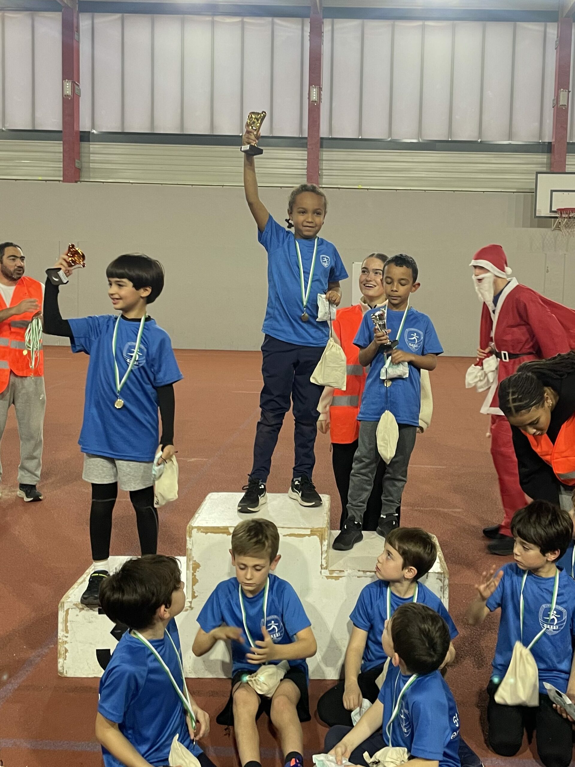 Pour finir, chaque enfant a été chaleureusement récompensé pour ses efforts : une médaille, quelques friandises, avec évidemment la présence de notre Père Noël athlétique ! Les trois premiers de chaque catégorie sont également montés sur le podium pour recevoir une coupe.