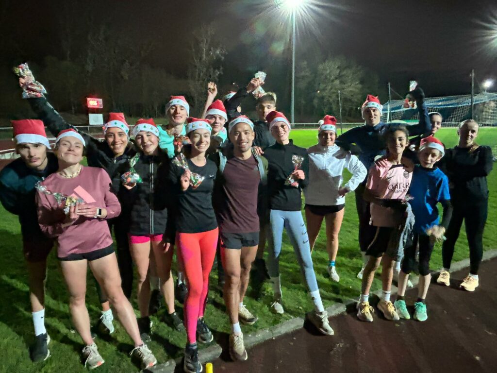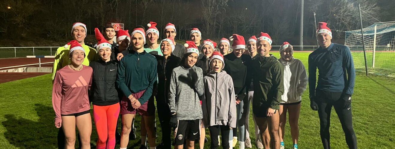 Il n’y a pas que les enfants des écoles d’Athlé qui ont eu la visite de Père Noël : hier, le groupe demi-fond de Cédric a découvert l’entraînement de Noël concocté par leur entraîneur, en tenue de circonstance !