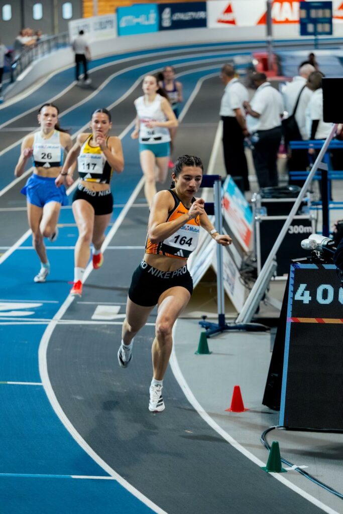 Placée au couloir 5 au départ, Théa est bien partie, mais les filles des couloirs intérieurs faisaient toutes un très gros effort pour sortir devant elle au rabat. Si bien que Théa se retrouvait en 5ᵉ position à l’entame du 2ᵉ tour. Elle ne s’est pas affolée, restant calée à la corde, en queue de peloton, et comme hier, finissait très fort. Elle remontait ainsi jusqu’à la 3ᵉ place, venant échouer à 14/100 de la 2ᵉ.