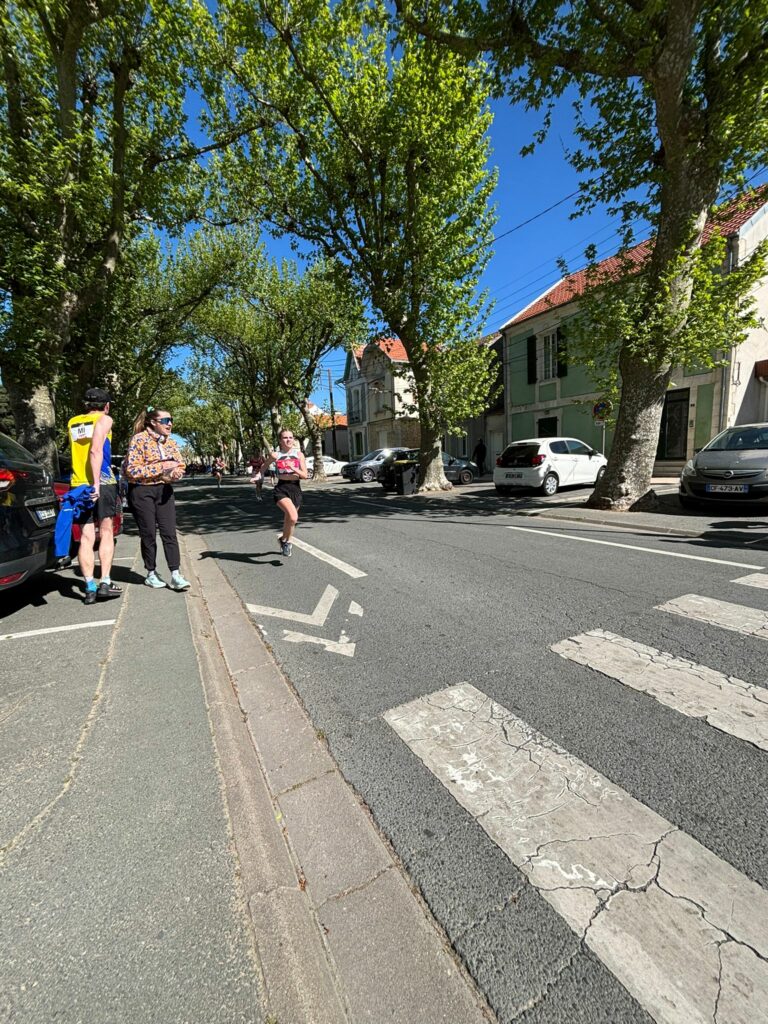 Cécile. D, troisième relayeuse, malgré quelques mésaventures les semaines précédentes, donne tout sur son 5 km. L’objectif des 24 minutes est largement atteint avec un chrono de 23’34’’.