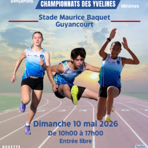 Equip’Athlé Championnat départemental par équipes pour les Benjamin(e)s et les Minimes ... 10 Mai 9 h 00 min - 17 h 00 min Guyancourt